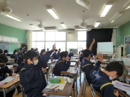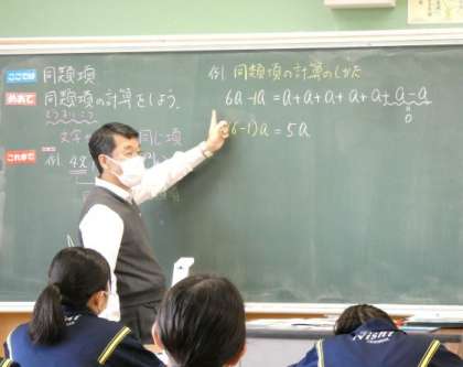 4月19日(水)授業の様子(2年2組 数学) 公開日 2023/04/19 更新日 2023/04/19 今日の西中 2年生の数学は、同類項の計算の授業です。 同類項を見つける学習を元に、計算の仕方を考えました。 とても意欲的で、積極的に取り組んでいます。