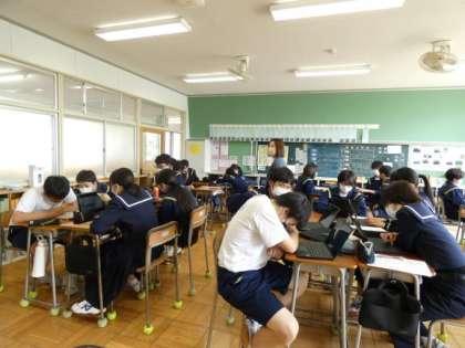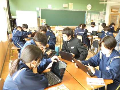 4月19日(水)授業の様子(3年3組 総合的な学習の時間) 公開日 2023/04/19 更新日 2023/04/19 今日の西中 3年生の総合は、修学旅行の事前学習の授業です。 今日は、ルートや利用する交通機関、昼食などを班ごとに話し合いました。 タブレットを駆使し、地図で場所を確認し、時刻表で時間を計算し・・・と、どの班も活発な意見交流を行いながら、決めていました。 計画を立てる時間がとても楽しそうです。