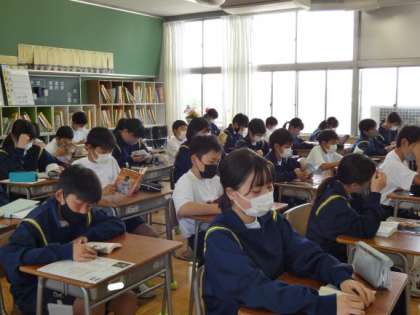 4月20日(木)朝読書 公開日 2023/04/20 更新日 2023/04/20 今日の西中 西中の朝は読書から始まります。 時間前から読書をする姿が見られ、どの学級も静かな時が流れています。 この読書の時間を大切にすることで、読書に親しむ気持ちが育まれ、1日のよいスタートが切れるとよいと思います。