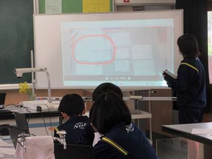 前時までにスケッチした色々な生物を2つの観点で分類しました。観点の規準を班ごとに定め、話し合いを行いました。最後、話し合いの結果を全体で共有しました。