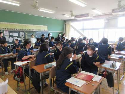 5校時、今年度1回目の授業参観でした。生徒達は緊張しながらも、のびのびと普段通り授業に臨んでいました。保護者の皆様、参観ありがとうございました。