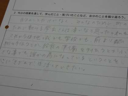 地域のために、社会のために、自分だったらどうするか、どうしたいかについて、自分のこととして深く考えました。