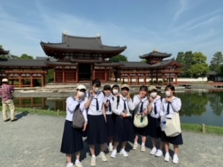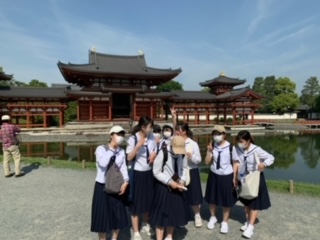3日目のクラス別行動。4組は宇治平等院に来ました。10円玉や一万円札と並べて、美しい鳳凰堂を見学しました。