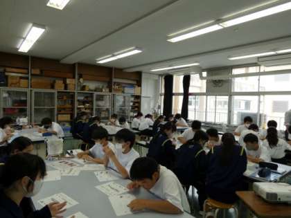 中を開いて気味悪そうに見ている生徒がいれば、すみずみまで調べようと意欲満々の生徒もいます。