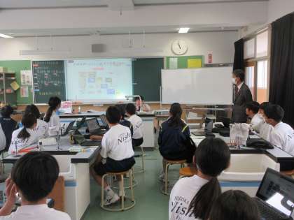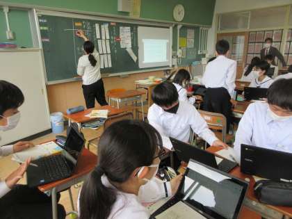 藤岡市教育委員会による年度始め訪問が行われました。教育長さん始め6名の市教委の方に来校していただき、令和5年度の学校経営について説明を行うとともに、指導・助言をいただきました。途中、授業参観を行い、校内の様子も見ていただきました。生徒が集中して授業に臨んでいること、けじめある授業態度であること等、生徒の姿を褒めていただきました。(上:1年2組理科、中:1年3組英語、下:2年1組国語)