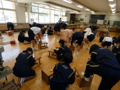曲尺を使い、垂直に切れるよう挑戦しました。まっすぐ切れたか立てて確かめていました。上手にできたと、見せてくれる子もいました。