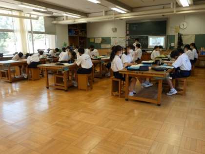 6月7日(水)授業の様子(1年1組 技術) 公開日 2023/06/07 更新日 2023/06/07 今日の西中 1年生の技術は、木材の特徴についての授業です。 これまでに釘打ちやのこぎりの使い方などを学んできました。 ここでは本棚を作って基礎的な技術を身に付けていきます。 このあと、その技術を使ってオリジナルの木製作品を制作する予定です。