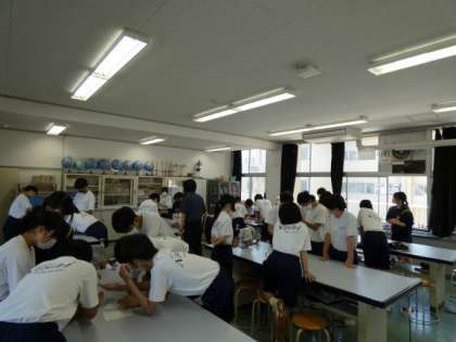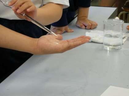 6月7日(水)授業の様子(2年3組 理科) 公開日 2023/06/07 更新日 2023/06/07 今日の西中 2年生の理科は、アンモニアが発生するときの湿度変化についての授業です。 アンモニアが発生するときに、吸熱反応が起こることが分かりました。 手のひらにのせて実際に涼しくなることを体感し、化合物についての関心がますます深まった授業となりました。