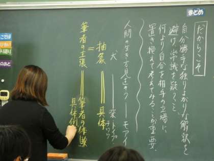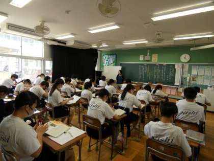 6月7日(水)授業の様子(3年4組 国語) 公開日 2023/06/07 更新日 2023/06/07 今日の西中 3年生の国語は、説明文の授業です。 今日は、接続詞に着目して文脈を読み、筆者の主張を捉えよう、というめあてです。 1、2年生で学んだ説明文や具体的な例をもとに考えました。 筆者の主張と構成、抽象と具体等、どのように説明文が組み立てられるか、深く学ぶことができました。
