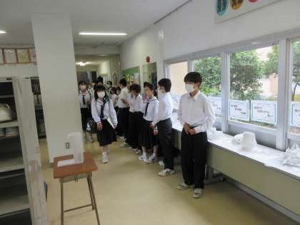 6月9日(金)あいさつ運動 公開日 2023/06/09 更新日 2023/06/09 今日の西中 あいさつ運動は、科学部が当番でした。今朝はあいにくの雨模様、玄関でのあいさつ運動でした。元気で爽やかなあいさつで、登校する生徒を迎えていました。