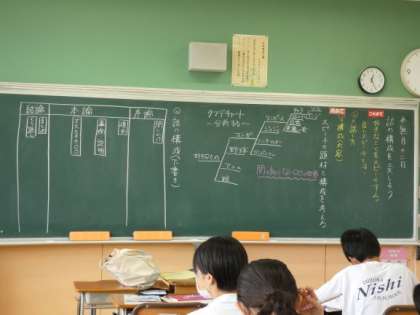 6月12日(月)授業の様子(1年3組 国語) 公開日 2023/06/12 更新日 2023/06/12 今日の西中 1年生の国語は、スピーチの授業です。 よいスピーチをするために、話の構成を工夫することを学んでいます。 今日は、「好きなこと」について、クマデチャートを使って話したいことを書き出しました。 このあと、構成を考え、スピーチの内容を精選していきます。