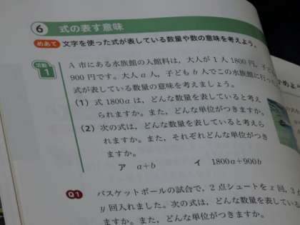 文字を使った式が、どんな数量を表しているのか、単位は何になるのかを考えました。 練習問題にも意欲的に取り組みました。
