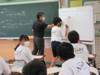 6月15日(木)授業の様子(1年2組 数学) 公開日 2023/06/15 更新日 2023/06/15 今日の西中 文章の内容を文字式で表しました。課題にも意欲的に取り組み、たくさんの生徒が挙手をして発表していました。