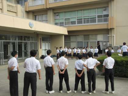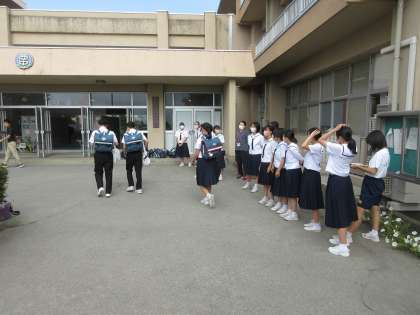 あいさつ運動は、男女卓球部が当番でした。元気で爽やかなあいさつで、登校する生徒を迎えていました。