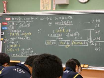 6月22日(木)授業の様子(3年2組 社会) 公開日 2023/06/22 更新日 2023/06/22 今日の西中 3年生の社会は、戦後日本の政治についてです。 普通選挙や農地改革など、いろいろな改革が行われましたが、その中でも憲法が改正されたことについて、くわしく調べました。