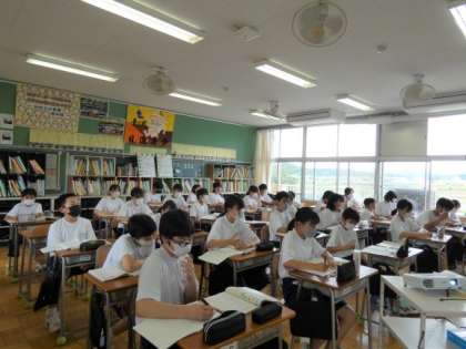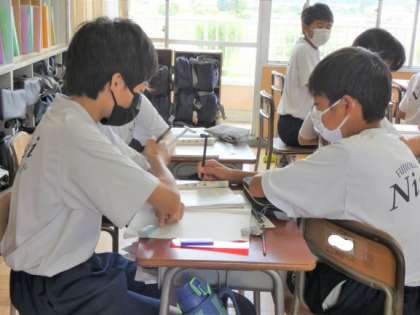 6月23日(金)授業の様子(1年2組 数学) 公開日 2023/06/23 更新日 2023/06/23 今日の西中 1年生の数学は、文字と式の利用に取り組んでいます。 問題を自力で解決しようと、グループで考えを出し合いました。 課題は難しかったと思いますが、最後まで粘り強く勉強することができました。