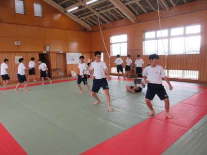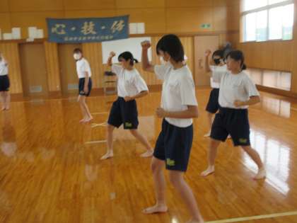 7月13日(木)授業の様子(3年2組 体育) 公開日 2023/07/13 更新日 2023/07/13 今日の西中 3年2組は、体育で空手道を学んでいます。演武の完成度を高めることをめあてに、繰り返し練習を行いました。正確性、統一性、気合、目付け、残心の5観点に留意し、かけ声に合わせ、動きを確認していました。