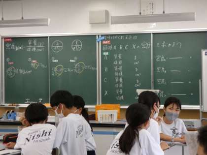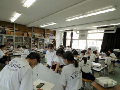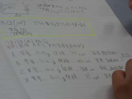 7月13日(木)授業の様子(1年3組 理科) 公開日 2023/07/13 更新日 2023/07/13 今日の西中 1年生の理科では、個体の密度を求める実験を行っていました。 これまでに学んだ質量の求め方を活用して、4つの個体の密度を求めました。 質量と体積をはかり、密度を求めることができました。