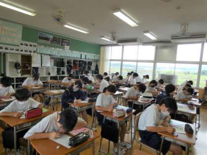9月6日(水)授業の様子(1年3組 数学) 公開日 2023/09/06 更新日 2023/09/06 今日の西中 1年生の数学は、速さや道のりの問題を1次方程式について、どう活用すればよいかを考えました。 何をどう求めればよいのかを筋道立てて考え、解いていました。 1時間集中して取り組むことができました。