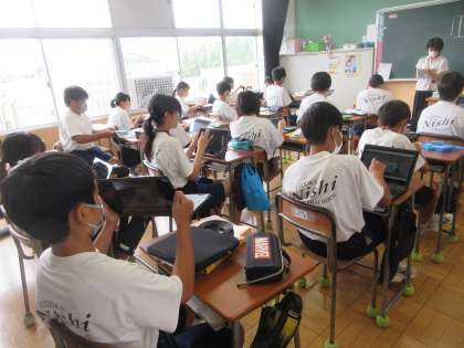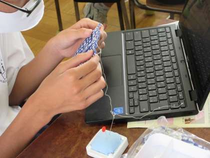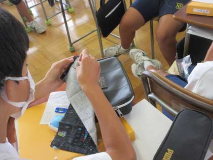 ティッシュカバーを制作しています。まつり縫い、半返し縫い、重ね縫い、かかり縫いと部分毎に縫い方を変えます。皆、慎重に針を動かしていました。