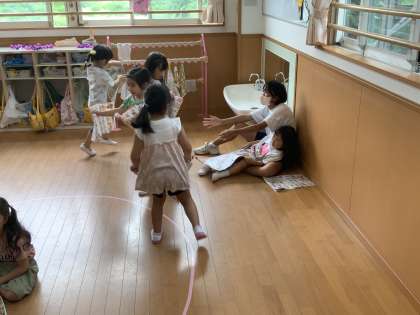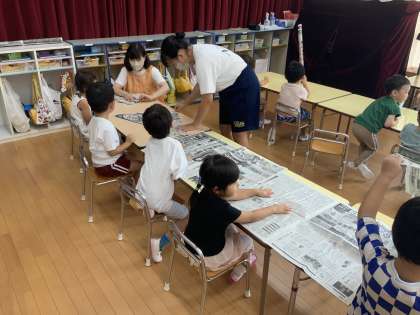 9月6日(水)チャレンジウィーク 公開日 2023/09/06 更新日 2023/09/06 チャレンジウィーク 直心こども園では、雨のため、室内で絵を描いたり、新聞紙を使った遊びをしたりしていました。優しく声をかけ、園児と楽しみながら取り組んでいました。