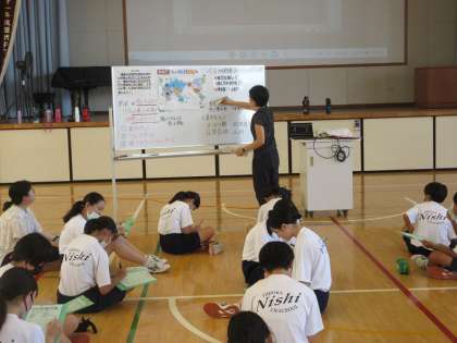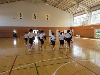 9月12日(火)授業の様子(1年3組 体育) 公開日 2023/09/12 更新日 2023/09/12 今日の西中 世界各国のフォークダンスを学んでいます。今日は、イスラエルの「ハーモニカ」というフォークダンスを踊りました。跳ぶように足を交差しながら踊る、躍動感あるダンスです。元気に楽しそうに踊っていました。