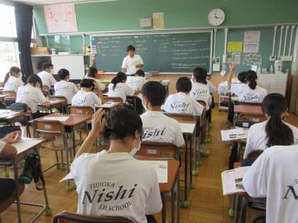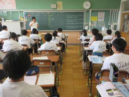9月14日(木)授業の様子(2年1組 英語) 公開日 2023/09/14 更新日 2023/09/14 今日の西中 教科書読解を行いました。防災公園について書かれた文章を、一文一文丁寧に確認しながら、まとめていきます。質問に対して、積極的に挙手をして発言していました。