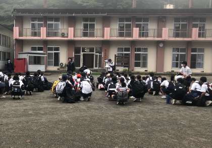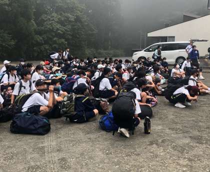 高原学校に到着しました。これから入校式です。