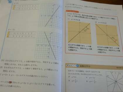 1年生の数学では、比例のグラフの特徴を考えました。