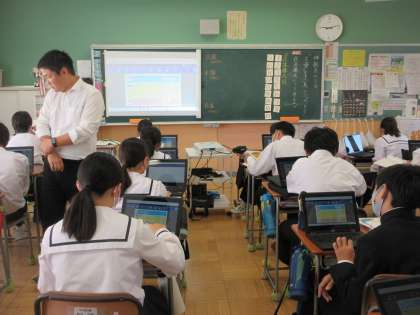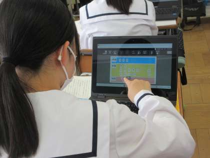 10月13日(金)授業の様子(1年2組 国語) 公開日 2023/10/13 更新日 2023/10/13 今日の西中 「言葉をもつ鳥 シジュウカラ」という説明文をとおして、段落構成について考えました。各段落が、序論、本論、結論のどこにあたるか、段落構成図をタブレットPCを用いてつくり、意見交流を行いました。
