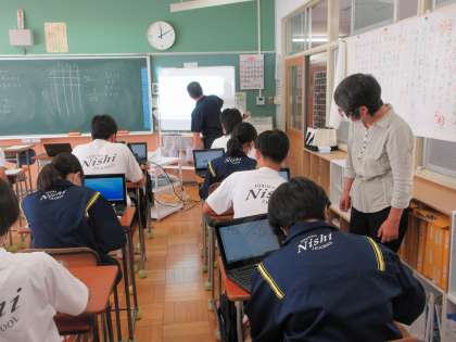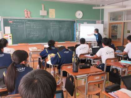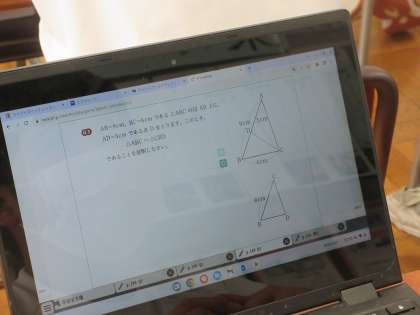 10月13日(金)授業の様子(3年3組 数学) 公開日 2023/10/13 更新日 2023/10/13 今日の西中 相似の図形についての学習が続いています。デジタル教科書を用いることで、視覚的にイメージしやすくなるため、理解が深まっているようです。