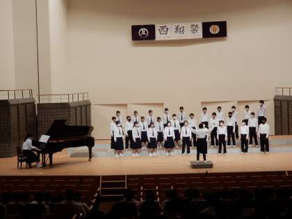 10月18日(水)西翔祭〜1年合唱〜 公開日 2023/10/18 更新日 2023/10/18 今日の西中 1年生は、元気で明るい学年の雰囲気が伝わる、完成度の高い合唱でした。それぞれクラスの特徴・雰囲気が現れており、1年生らしく素直で伸びやかな歌声が印象的でした。 (上:1組「HEIWAの鐘」、中:3組「My Own Road〜僕が創る明日〜」、下:2組「大切なもの」)