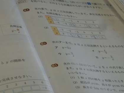 1年生の数学は、反比例の学習に入りました。