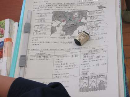 10月20日(金)授業の様子(2年1組 社会) 公開日 2023/10/20 更新日 2023/10/20 今日の西中 近畿地方では、地形や気候にどのような特色があるか、まとめました。近畿地方を北部、中央部、南部に分けて整理しました。
