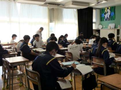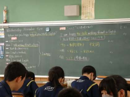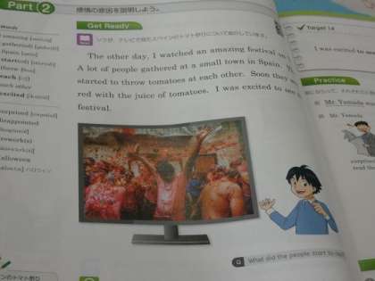11月1日(水)授業の様子(2年3組 英語) 公開日 2023/11/02 更新日 2023/11/02 今日の西中 2年生の英語は、感情の原因を説明する表現について考えました。 教科書のトマト祭りの例文をもとに、「〜して〜(感情)だ。」という感情の原因を説明する表現を学習しました。 これまでに学んだ表現とどこが違うのかを話し合いました。