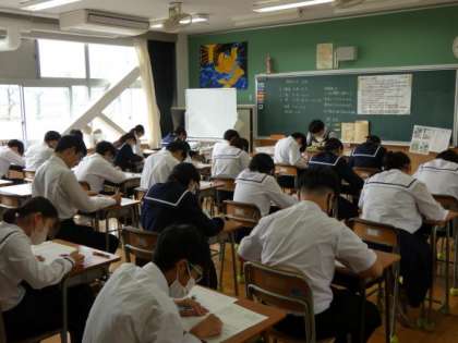 11月6日(月)授業の様子(3年生 期末テスト) 公開日 2023/11/06 更新日 2023/11/06 今日の西中 3年生は、今日から3日間の期末テストに臨みます。 今日は、保健体育、社会、音楽のテストを行いました。 どの時間も集中して取り組んでいました。