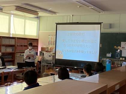 午後、西中学校を会場に西連携型小中一貫校「ふるさと藤岡郷土研究発表会」が開催されました。美土里小2名、平井小1名、日野小1名、西中2名の児童生徒が夏休み中に取り組んだ研究の成果を発表しました。仮説をもとに考えたり、実際に足を運んで調べたりと、郷土について興味を抱いたことを丁寧にまとめ、わかりやすく発表することができました。保護者のの方にも感想や意見をいっていただき、有意義な発表会となりました。