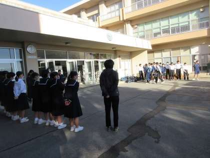 あいさつ運動は、2年3組が当番でした。元気で爽やかなあいさつで、登校する生徒を迎えていました。