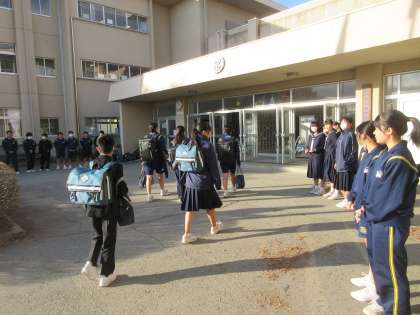 あいさつ運動は、2年2組が当番でした。元気で爽やかなあいさつで、登校する生徒を迎えていました。