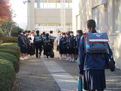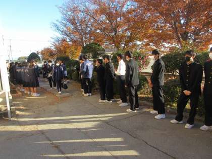 あいさつ運動は、3年4組が当番でした。元気で爽やかなあいさつで、登校する生徒を迎えていました。