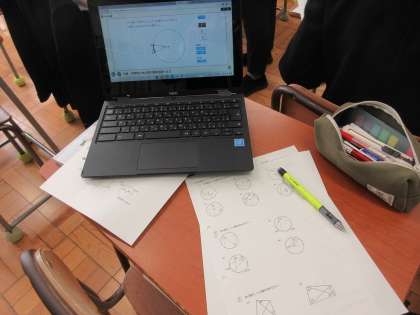 11月22日(水)授業の様子(3年4組 数学) 公開日 2023/11/22 更新日 2023/11/22 今日の西中 弧と円周角の関係について調べ、課題を解きました。「弧の長さが等しければ円周角が等しい」いうことを発展しながら問題を解いています。