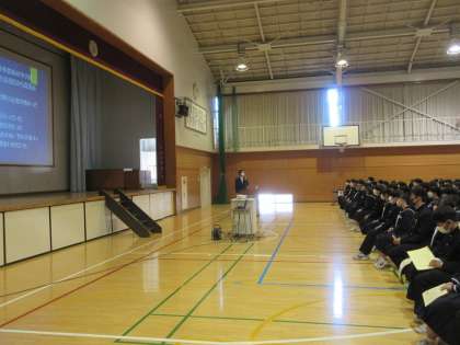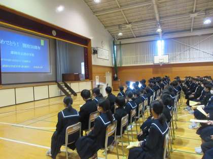 本日、開校50周年を記念して、記念講演会と記念演奏会を開催しました。記念講演会は、西中OBで西連携型小中一貫校学校運営協議会会長である松原様を講師に、西中時代の思い出や「アジアの子ども達に学校を贈る会」の活動の様子について、お話しいただきました。生徒は、カンボジアに群馬藤岡小学校があることや西中生徒会が井戸を送った話など、興味深く聞いていました。リサイクル活動から学校を贈ることができたことを知り、西中のリサイクル活動も一層盛んになることと思います。