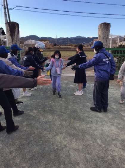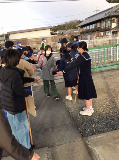 1月16日(火)WDS訪問あいさつ運動 公開日 2024/01/16 更新日 2024/01/16 今日の西中 本日、1月の「WDS訪問あいさつ運動」でした。今学期は、1年生の学級役員が美土里小、平井小、日野小に出向き挨拶運動を行います。平井小では6名の西中生が、小学生や民生児童委員の方々と一緒に挨拶を行いました。児童生徒・地域が連携し、更にあいさつのできる西中校区を築いていきたいと思います。