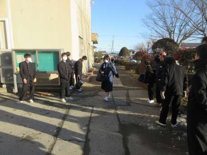 あいさつ運動は、1年1組が当番でした。元気で爽やかなあいさつで、登校する生徒を迎えていました。