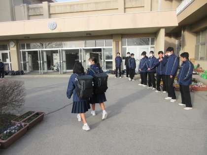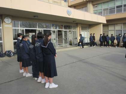 あいさつ運動は、3年2組が当番でした。元気で爽やかなあいさつで、登校する生徒を迎えていました。