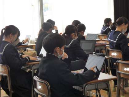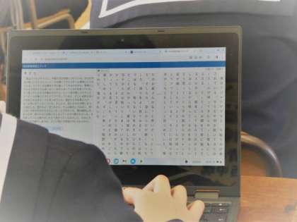 タブレットを使い、いろいろな友達の作文を読むことができました。