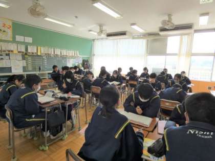 これまでに学んだ技法を確認したり、歌われている情景や作者の思いを想像したりし、グループで話し合ったことを学級全体で共有しました。