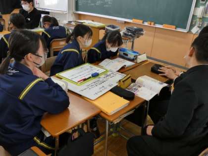 2月29日(木)授業の様子(3年2組 社会) 公開日 2024/03/01 更新日 2024/03/01 今日の西中 3年生の社会では、現代の課題を解決するにはどうしたらよいかを話し合いました。 例題を元に、SDG'Sの考え方などこれまでに学んできたことを生かして、解決方法をグループごとに考えました。 全体の発表では、自分たちでは思いつかなかった考えについて、納得する姿が見られました。