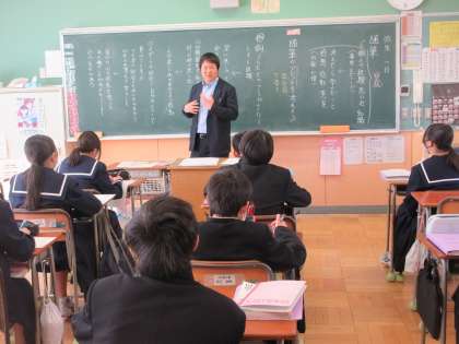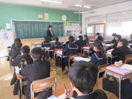 随筆について学んでいます。随筆文の書き方について、説明を聞きながら、個々に随筆のプロットについてワークシートに書きまとめています。