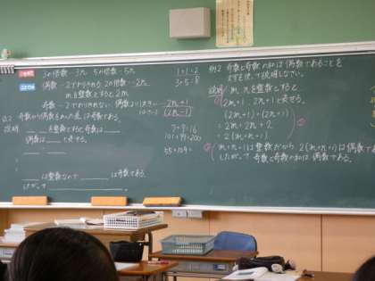 5月14日(火)授業の様子(2年3組 数学) 公開日 2024/05/14 更新日 2024/05/14 今日の西中 数の性質について、文字を使ってどう説明するかを考えました。 例えば、奇数+奇数の和は偶数になることを文字を使って、どう説明するか話し合いました。 説明の仕方については、友達と考えを出し合い、問題を解決していました。 徐々に問題が難しくなりましたが、最後まで粘り強く考えていました。